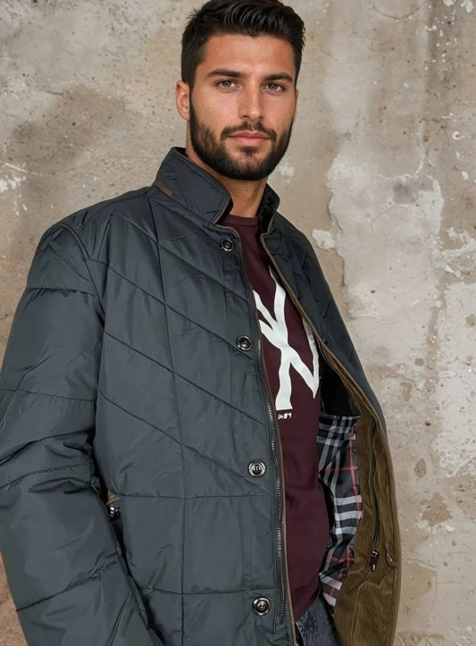 Heren gewatteerde jas met afneembare kraag en slanke pasvorm