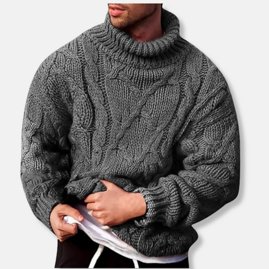 Herren Rollkragenpullover aus Wollmischung mit Zopfmuster – Bequeme Passform