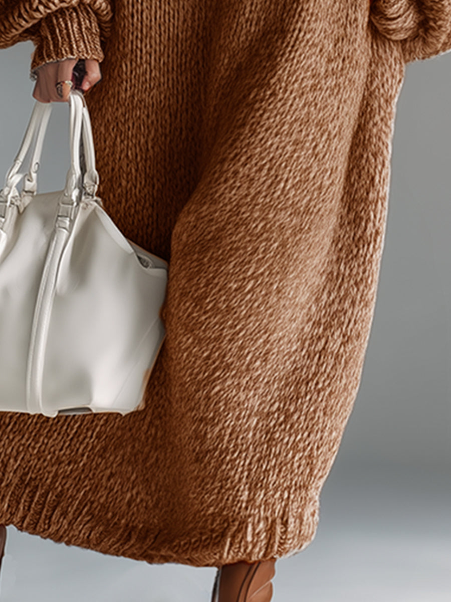 The dress is made of high-quality knitted fabric with a soft, slightly stretchy texture that feels comfortable and moves smoothly with the body. The loose fit offers freedom of movement and makes the dress suitable for various body types. Thanks to the long silhouette, the overall look is elegant and streamlined.