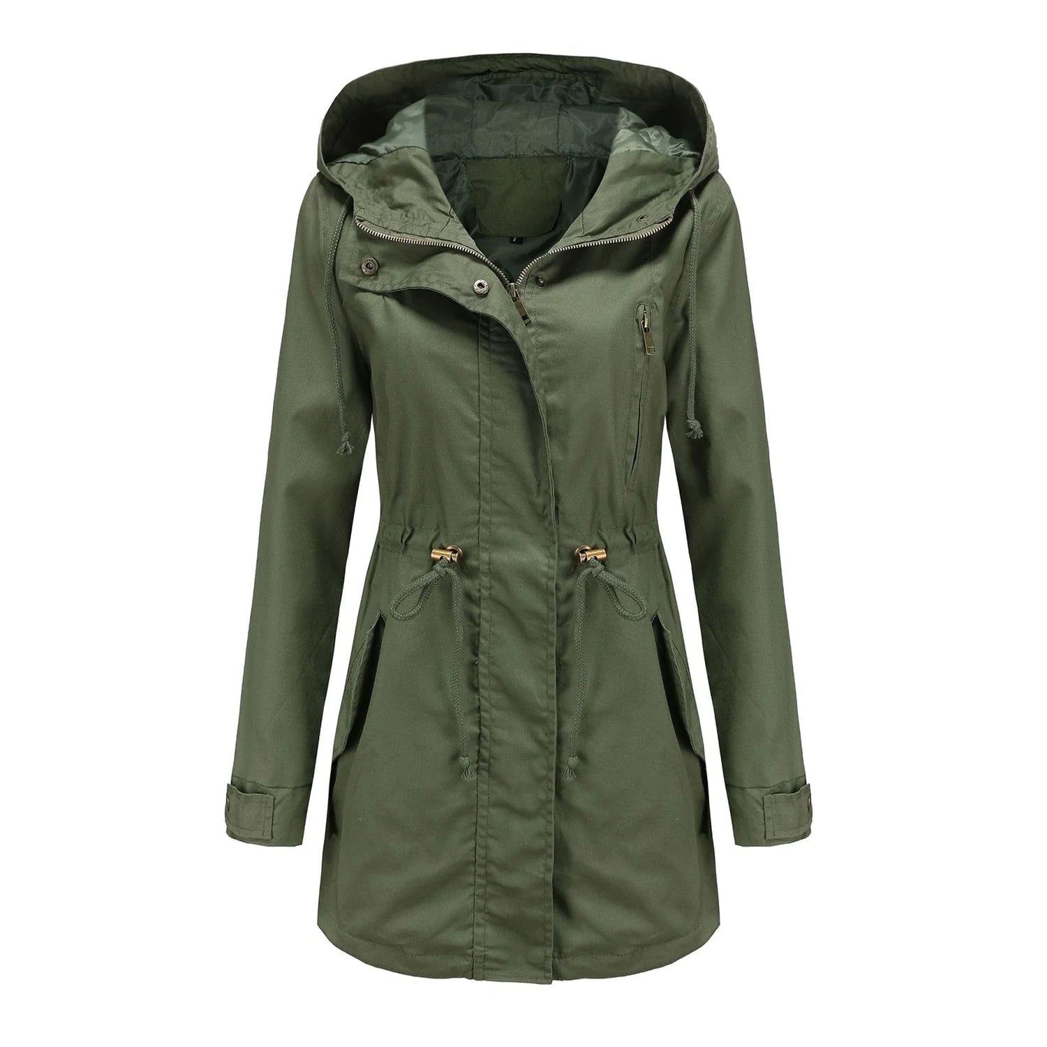 Blijf droog en zie er stijlvol uit met onze klassieke elegante waterdichte regenjas voor dames. Deze jas is speciaal ontworpen voor vrouwen die comfort en uitstraling willen combineren tijdens hun buitenavonturen.
