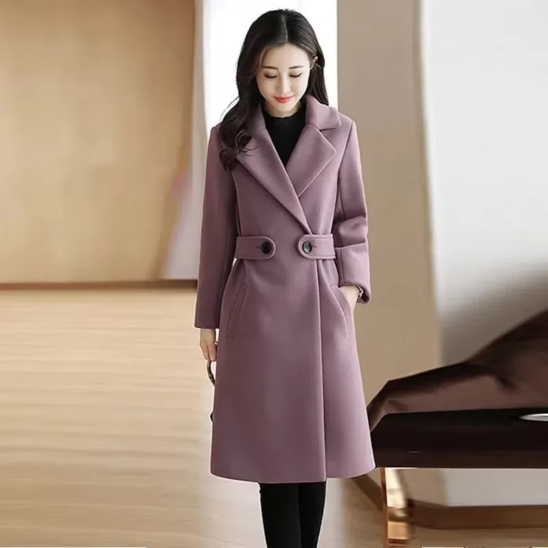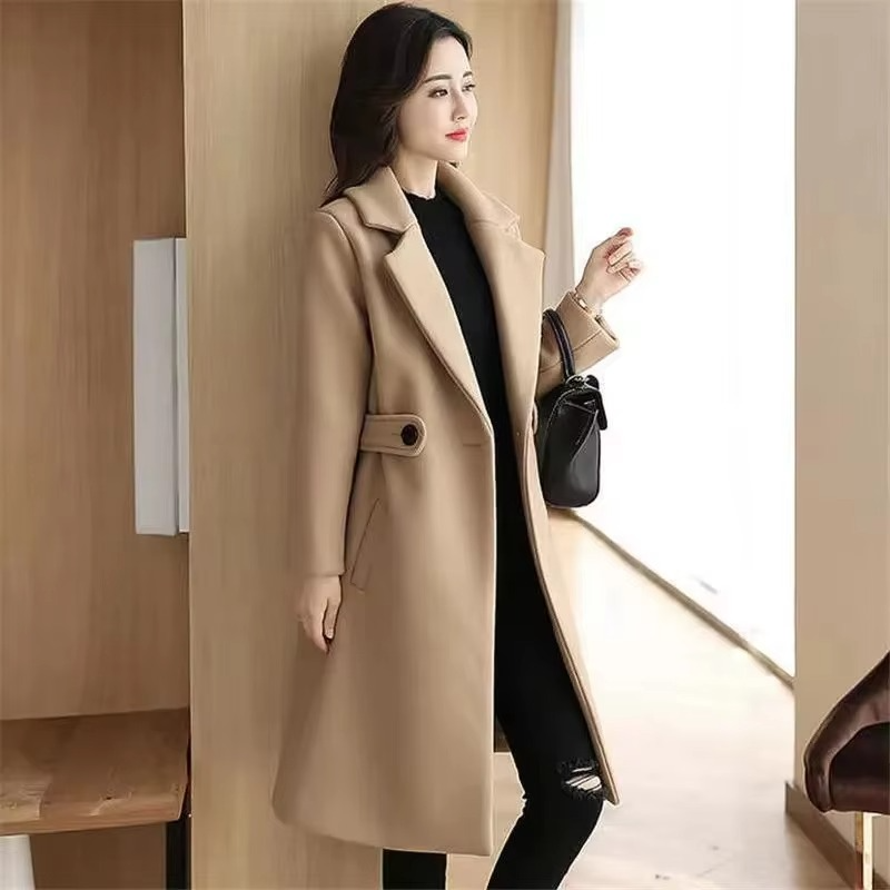 Dames Elegante Winterjas met Ceintuur en Knopen