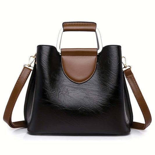 Elegante Twee-Kleurige Leren Handtas voor Dames