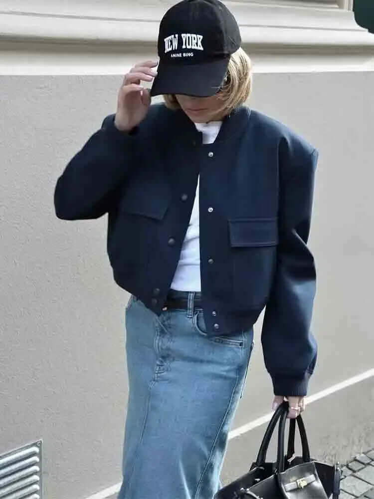 Dames Bomberjack met Zakken – Effen Kleur en Streetwear Stijl