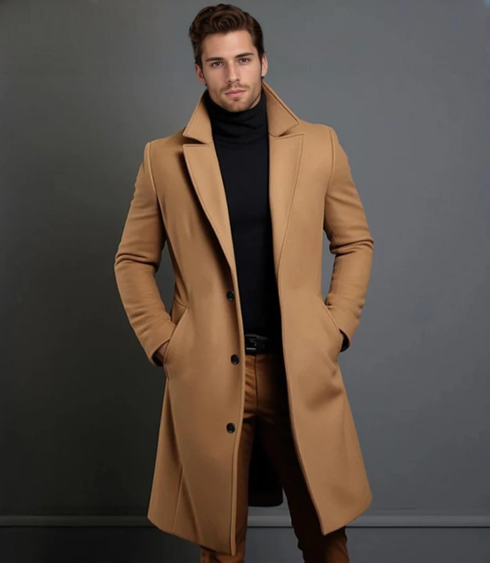 Geef je look een elegante upgrade met deze heren overjas van wolmix. Het getailleerde model en de klassieke reverskraag zorgen voor een verfijnde uitstraling, terwijl de warme wolmix je comfortabel houdt in de herfst en winter. Combineer met nette schoenen voor formele gelegenheden of draag met jeans en laarzen voor een smart-casual look.